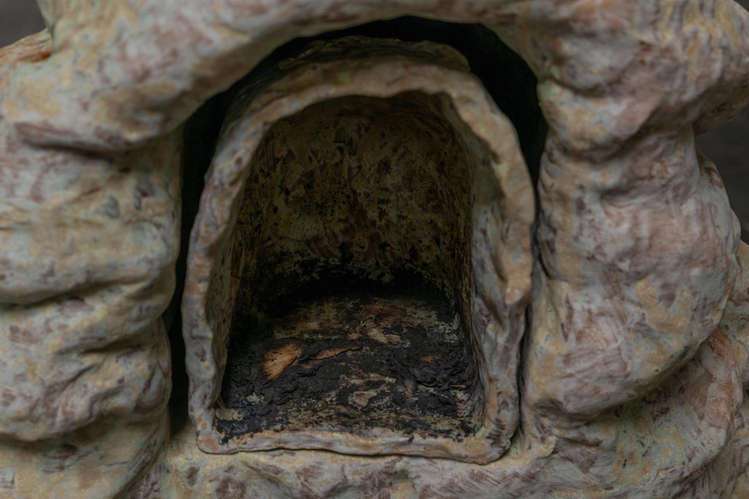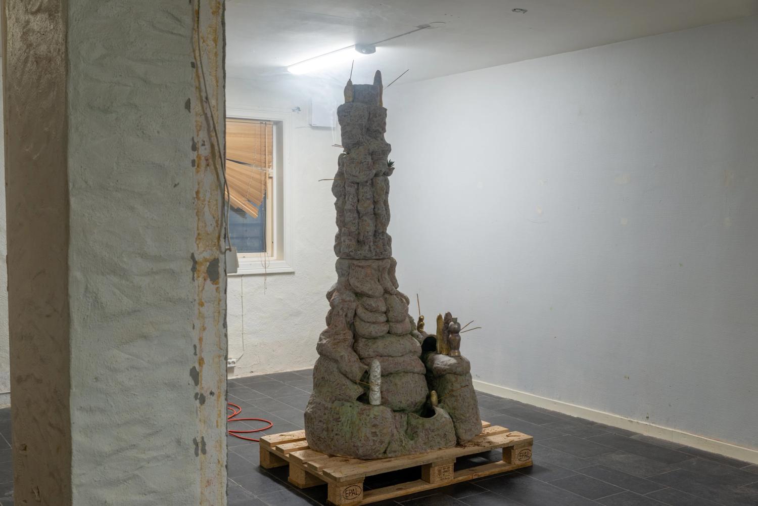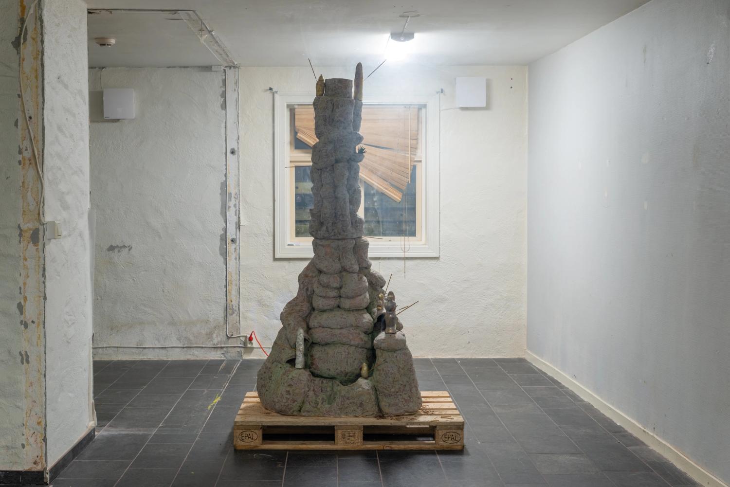 In the ceramic sculptures artist Bjørn Mortensen has worked on in recent years, he has often returned to overloading an object with potential functions. He has made sculptures that could serve as both a container, birdhouse, incense holder, fountain, flower pot and garden fireplace at the same time. These manifold functions have nevertheless only marked a potential within the objects. In the works for this exhibition, his aim has been to activate all the potentials at the same time. Using the title Feeding Fetish, Mortensen both hints at how these works may function, but also at how he himself has worked when creating them, "feeding" them with new layers, objects and functions.