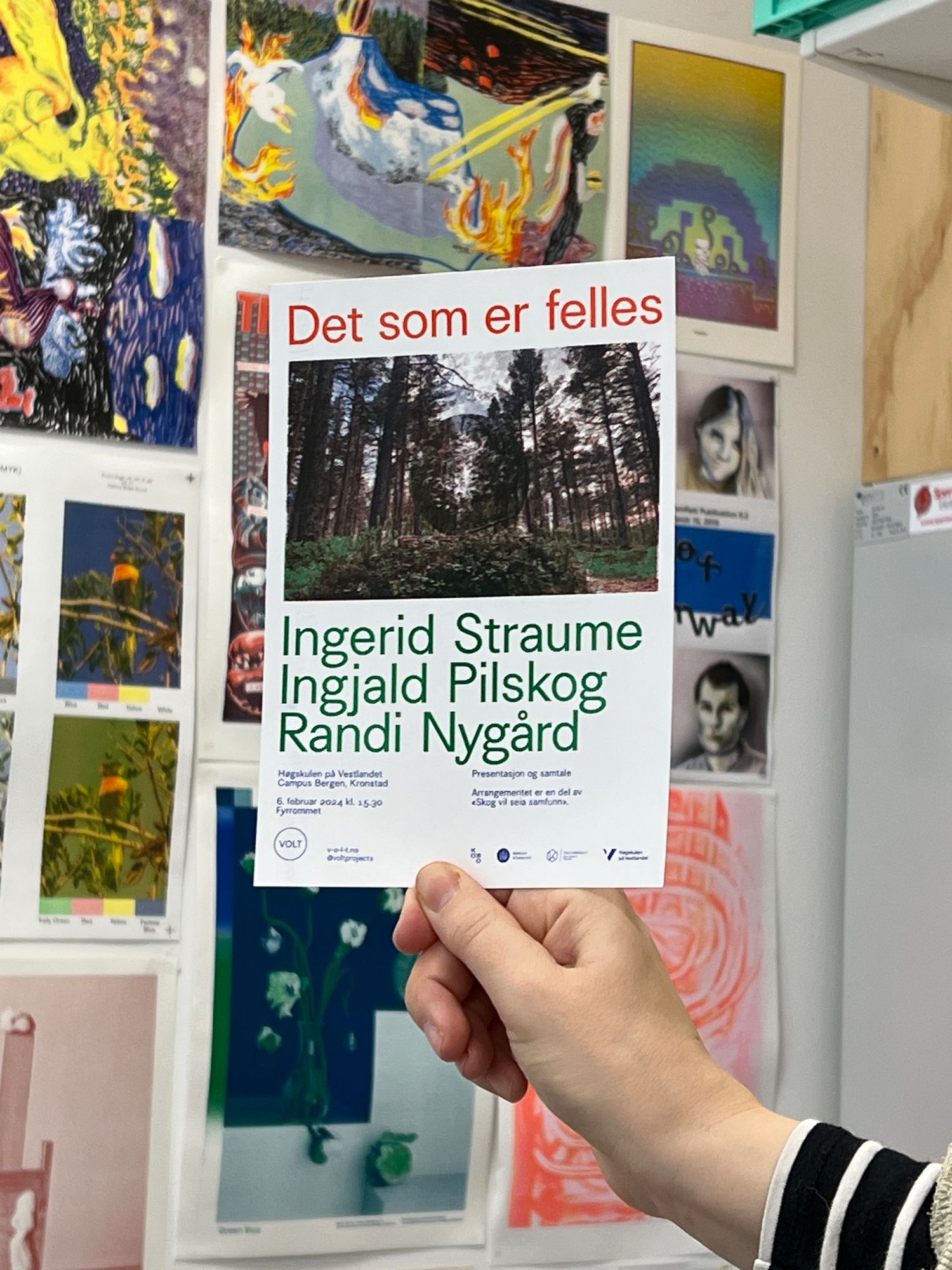 The event is part of Skog vil seia samfunn (Forest Means Society), Nygård’s long-term project for Volt, which will be installed in the Kronstad area of Bergen near the Western Norway University of Applied Sciences. Skog vil seia samfunn is inspired by a method developed by Japanese ecologist and botanist Akira Miyawa, whereby various native tree species are planted close together to create mini forests in urban spaces. These forests then purify the air, reduce noise, bind carbon and attract numerous animals and insects. Also known as ‘pocket forests’, they serve as micro-habitats that are considered to be particularly rich in species.