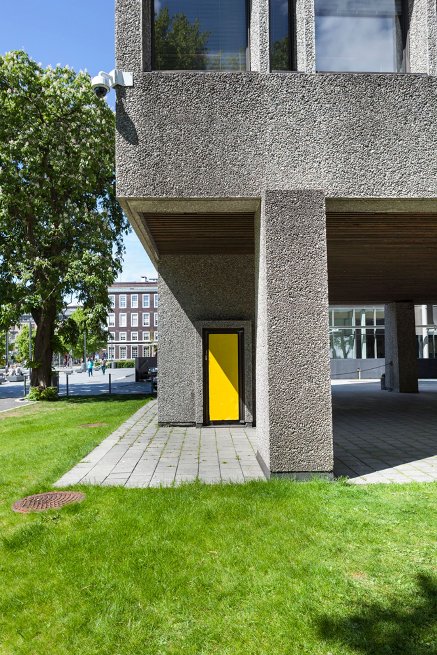The formats of the reliefs are taken directly from the door and window in which they are shown. The modernist expression in the reliefs is reflected in the City Hall itself, which was designed by Erling Viksjø, one of the foremost architects in Norwegian modernism. The City Hall in Bergen is in natural concrete and demonstrates Viksjø’s interest in structures and surfaces.
