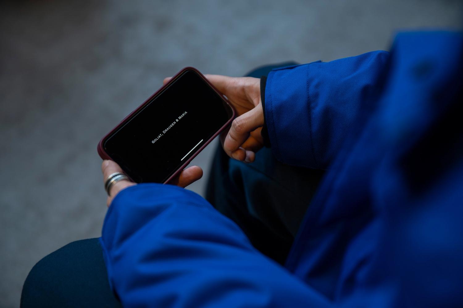 Filmen er tilgjengelig på smarttelefon eller nettbrett, via appen Goliat, Draugen & Maria som en kan laste ned gratis via en QR-kode. Appen tar i bruk Augmented Reality (utvidet virkelighet), en teknologi som kombinerer data fra den fysiske verden med virtuelle data, der objekter i den virkelige verden kan være vertskap for virtuelle elementer. Ved å scanne skulpturen med appen får man tilgang til filmen.