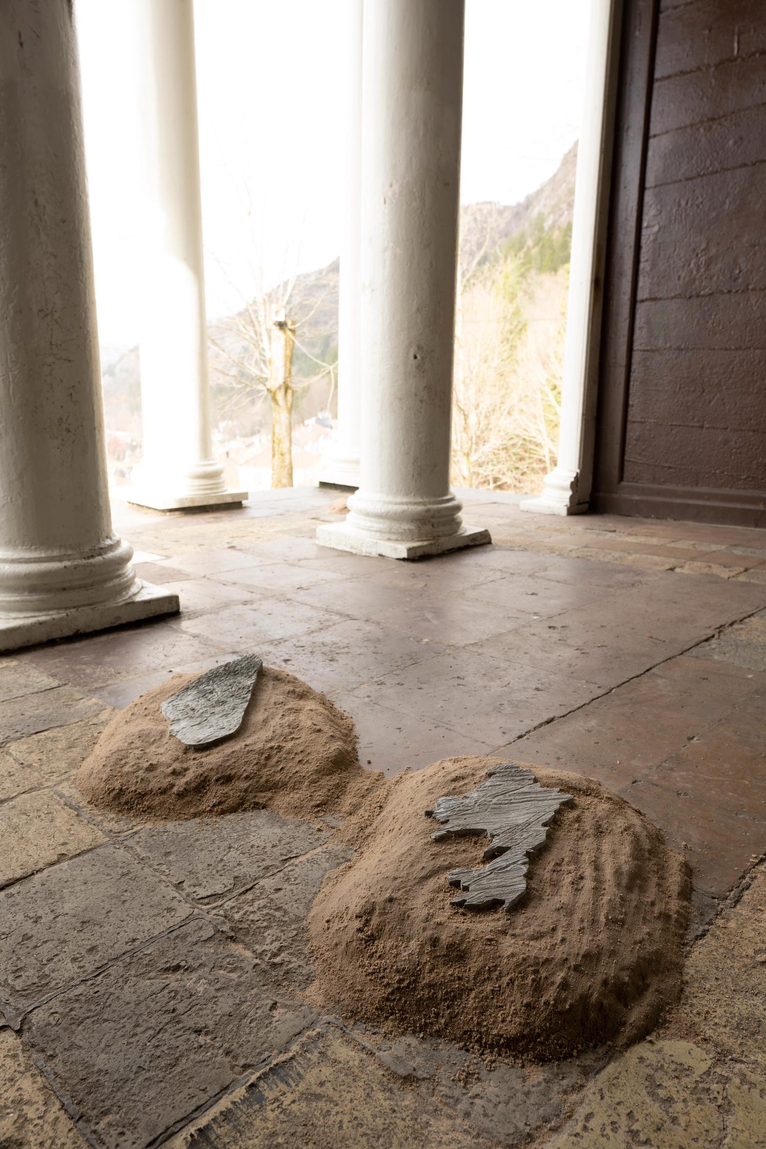På Mon Plaisir vises de tre skulpturene for første gang samlet. Tidligere har skulpturen Maria blitt vist ved Universitetsmuseet i Bergen, De naturhistoriske samlinger, og skulpturen Goliat har blitt vist i Strandkaiterminalens venteareal.