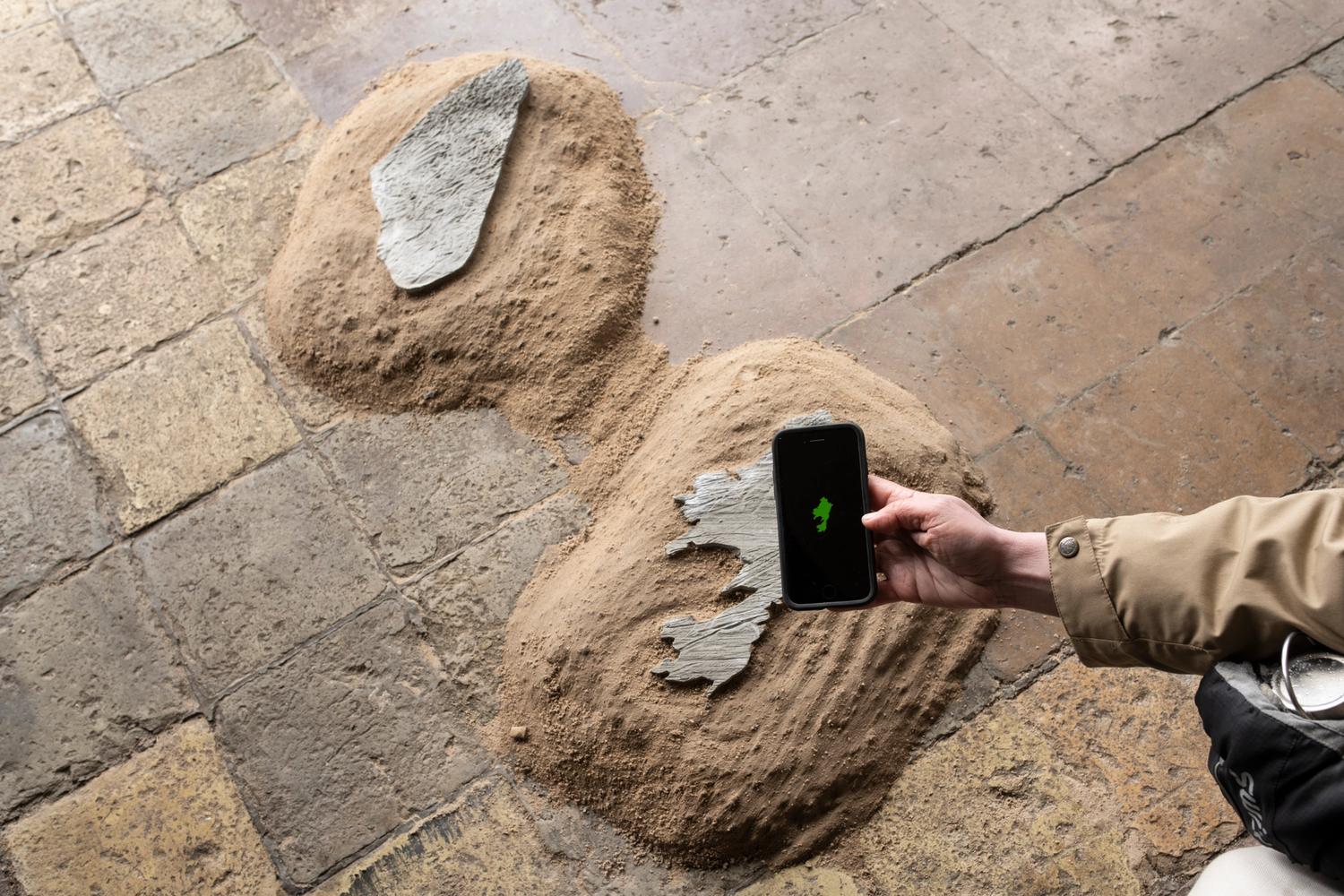 Filmen er tilgjengelig på smarttelefon eller nettbrett, via appen Goliat, Draugen & Maria som en kan laste ned gratis via en QR-kode. Appen tar i bruk Augmented Reality (utvidet virkelighet), en teknologi som kombinerer data fra den fysiske verden med virtuelle data, der objekter i den virkelige verden kan være vertskap for virtuelle elementer. Ved å scanne skulpturen med appen får man tilgang til filmen.