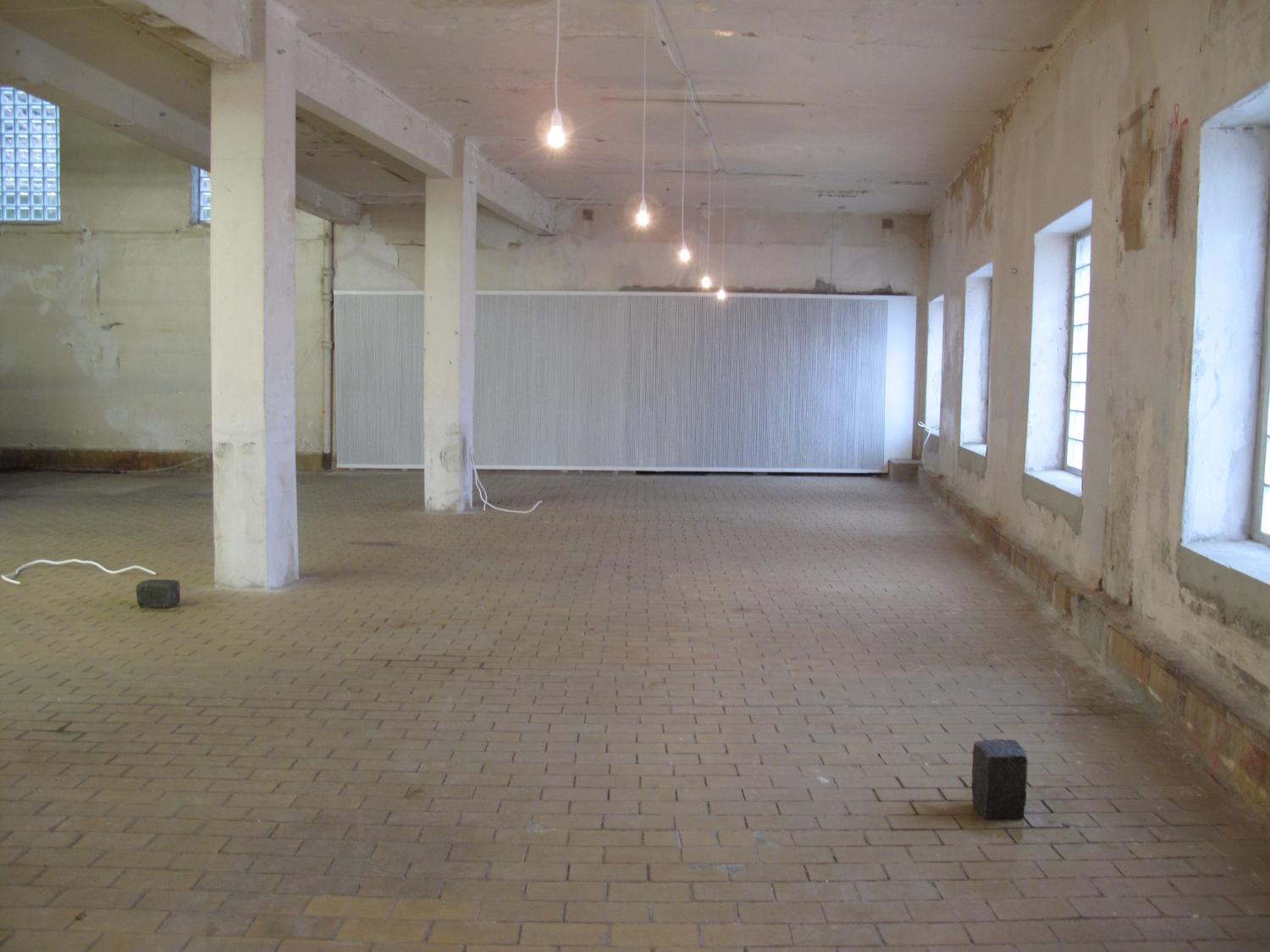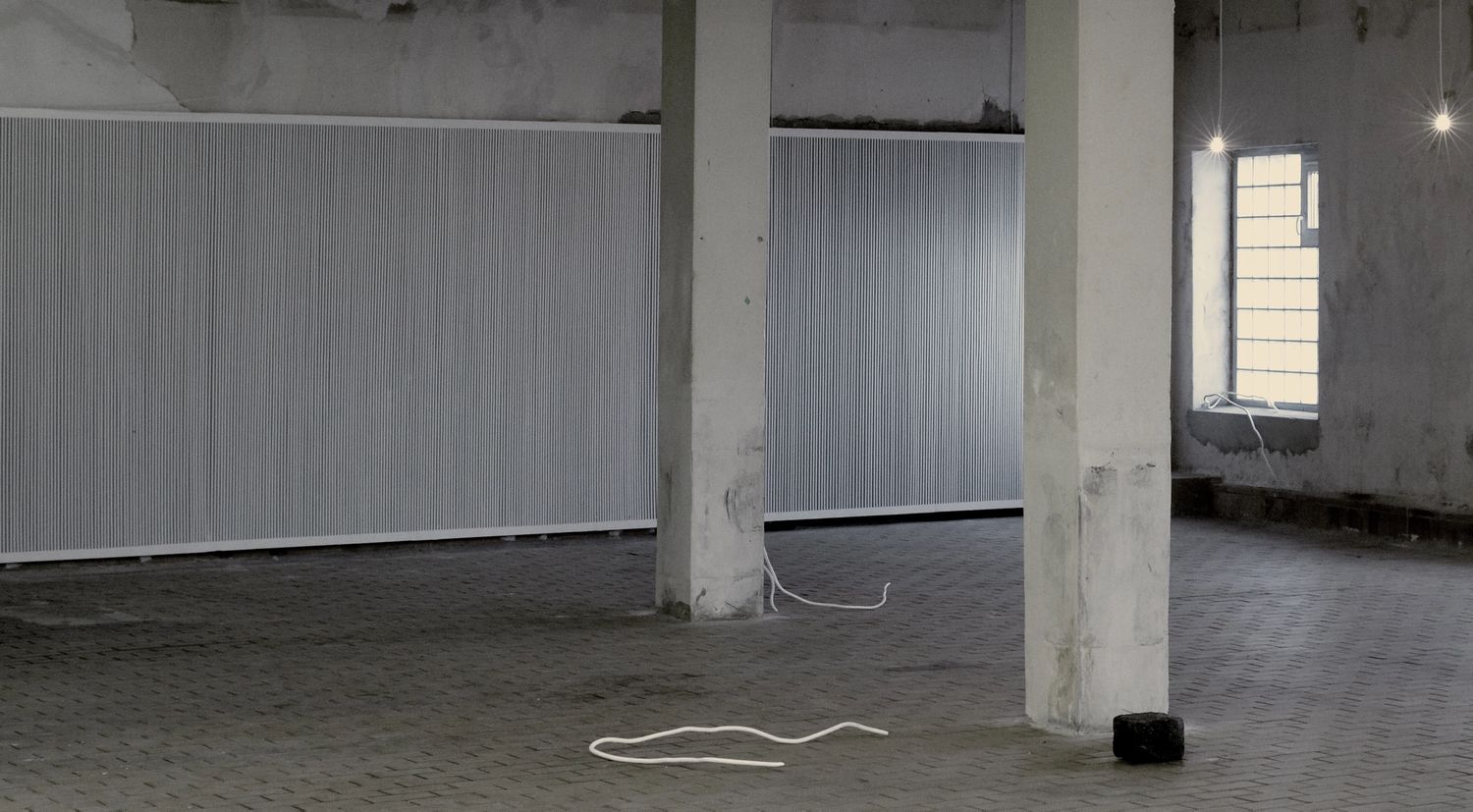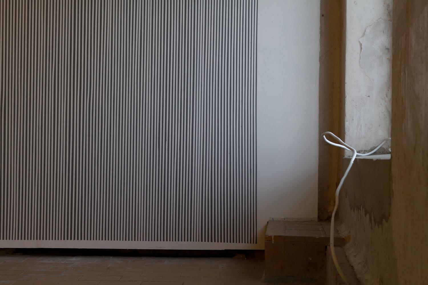 I utstillingen bruker Kristin Nordhøy sitt materialvokabular, som er blant annet maskeringstape og armeringsjern som er industrielt fremstilte masseproduserte materialer. Hun bruker ofte linjen som verktøy og repetisjon som metode i sine arbeider. I større veggarbeider dekker hun veggflater med tynne striper med maskeringstape og er opptatt av sammenhengen mellom oppføringen av arbeidet og de fysiske egenskapene i materialene.