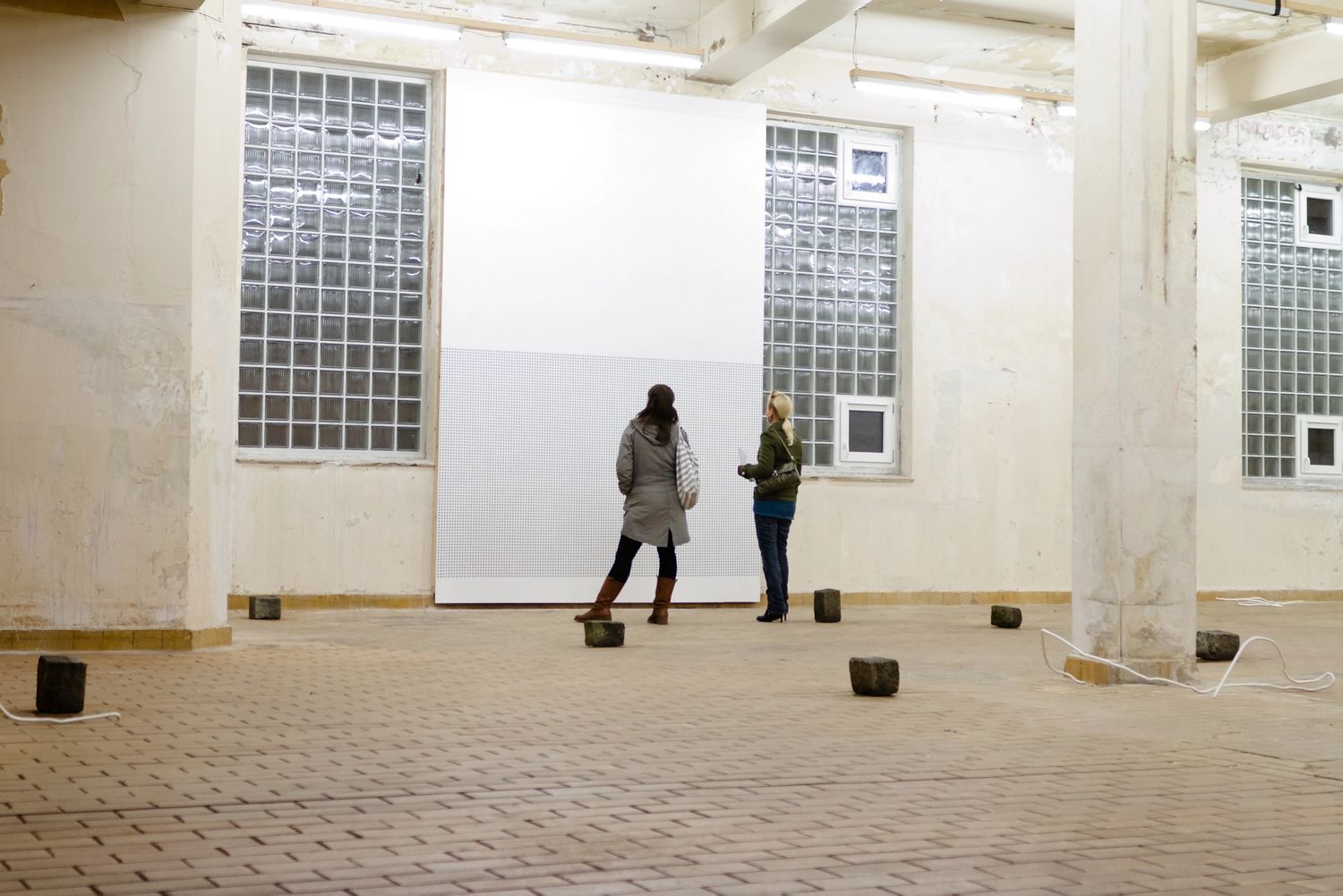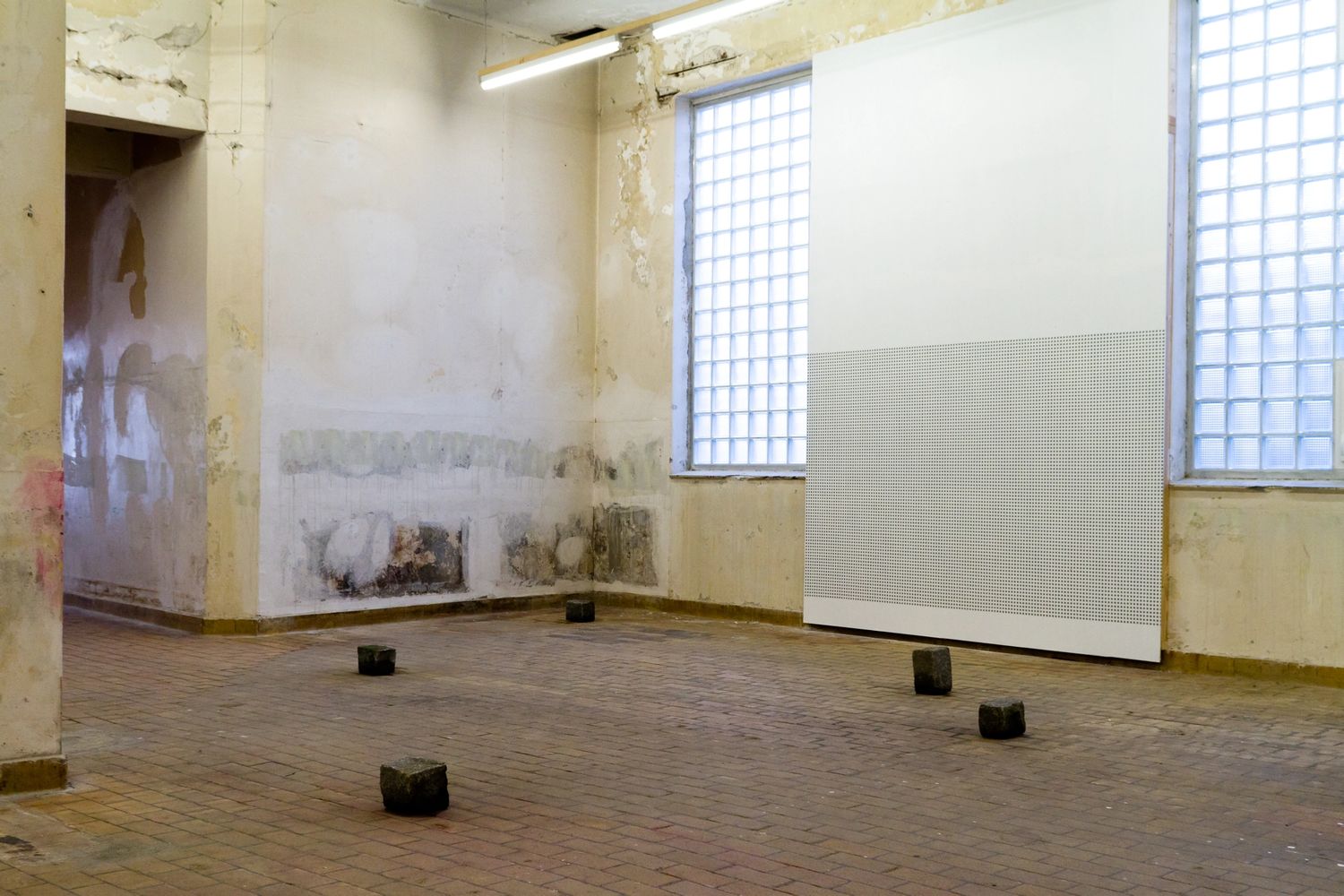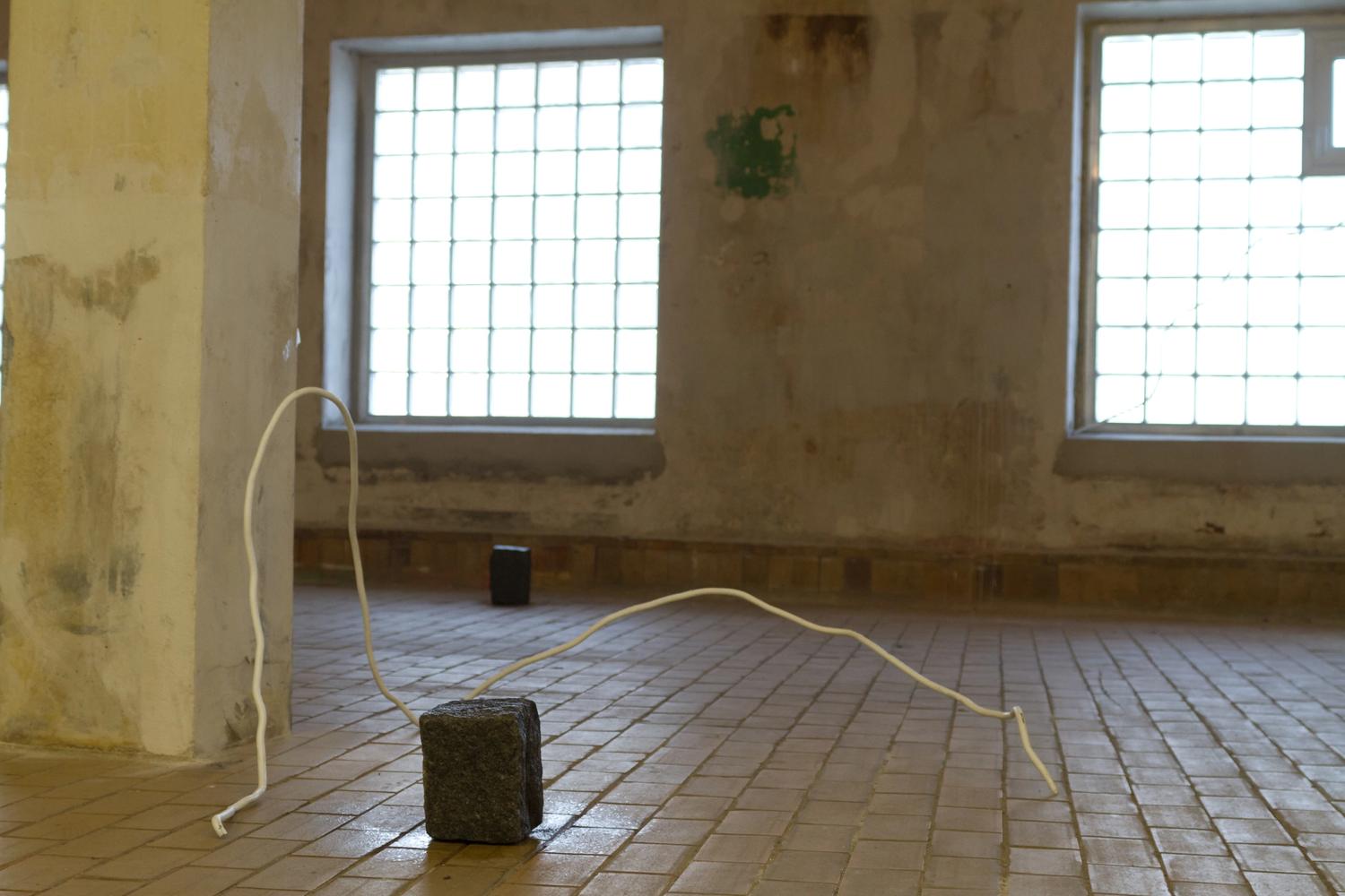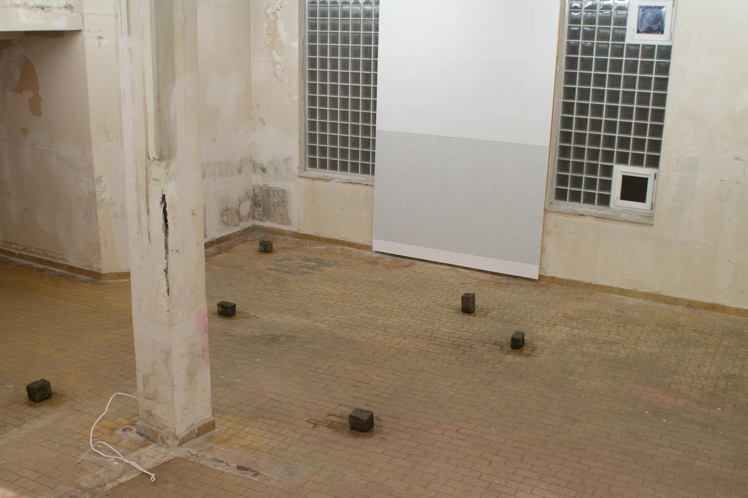 I utstillingen bruker Kristin Nordhøy sitt materialvokabular, som er blant annet maskeringstape og armeringsjern som er industrielt fremstilte masseproduserte materialer. Hun bruker ofte linjen som verktøy og repetisjon som metode i sine arbeider. I større veggarbeider dekker hun veggflater med tynne striper med maskeringstape og er opptatt av sammenhengen mellom oppføringen av arbeidet og de fysiske egenskapene i materialene.
